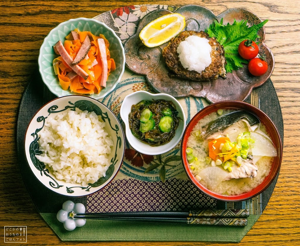 そんなわけで、海老バーグにブリのあら汁、予想外に贅沢な海鮮晩ごはんです。
