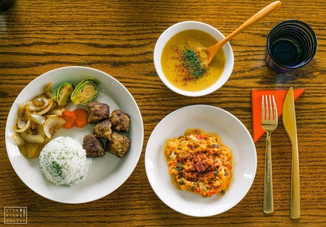 昨夜作ったレンズ豆のスープがちょうど二人分余りましたので、今日はトルコ料理ランチ。