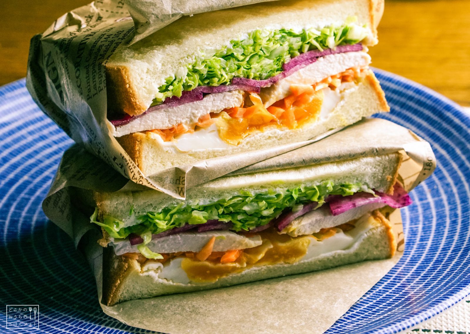 具は、カッテージチーズ、目玉焼き、自家製鶏ハム、人参ラペ、紅芯大根、フライドオニオン、キャベツ。キャベツをこれでもかと入れたつもりだったけど、この2倍くらい入れてもよさそうです。