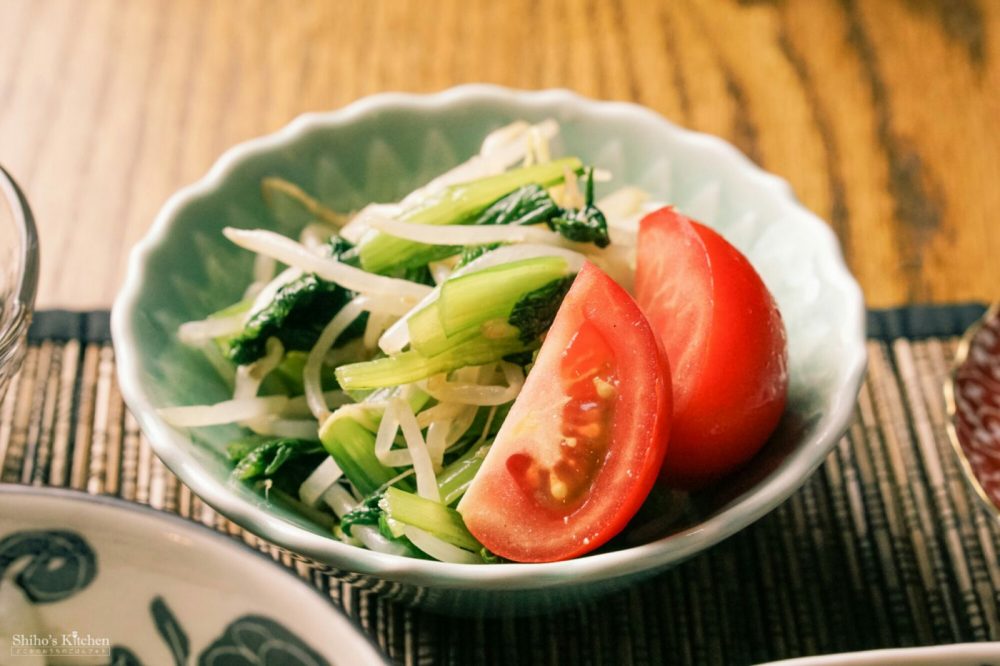 予告どおり、昨日のナムルも再来。量が微妙だったのでもやしと小松菜を一緒くたにして小鉢に。