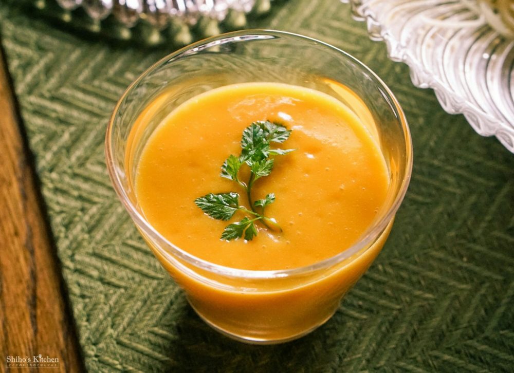 ポタージュは、バターナッツかぼちゃ半分を丸ごとラップにくるんで柔らかくなるまでチンしたら、熱いうちにスプーンで実をすくってミキサーに入れて、牛乳とほんの少しのコンソメを入れてガガっと回すだけです。簡単!