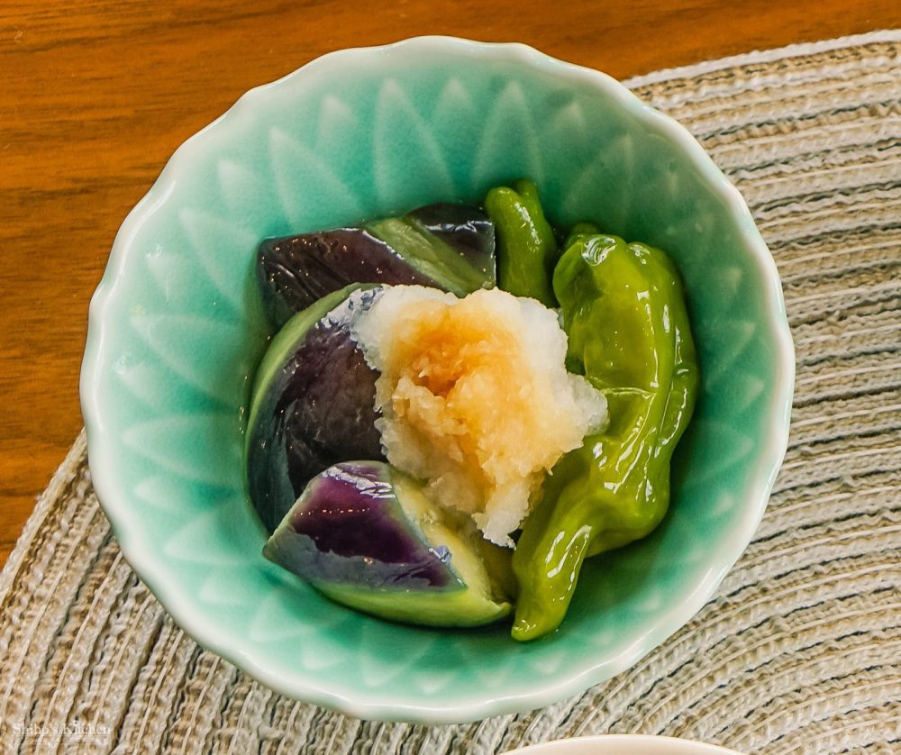 茄子とししとうは、いつもはラップしてレンチンで適当な煮浸しにしますが、今日は色をきれいに出したくてちゃんと素揚げ。うちで揚げ物するの久しぶり。