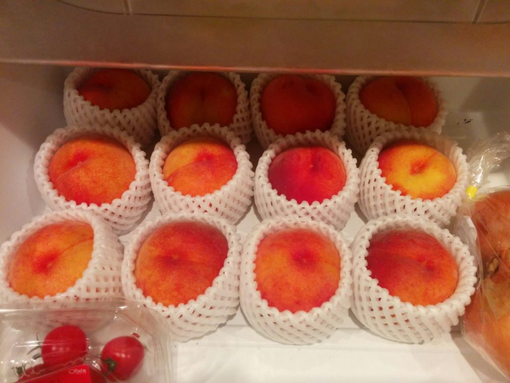 (他にも、ふるさと納税で届いた二十世紀梨・黄金桃・和牛切り落とし・和ヒレ肉、お葬式から持ち帰ったメロン・パイナップルそれぞれ丸ごと、など、いま冷蔵庫が大変なことに。。。せっせとフルーツを食べる日々です。桃だけでこんなに。)