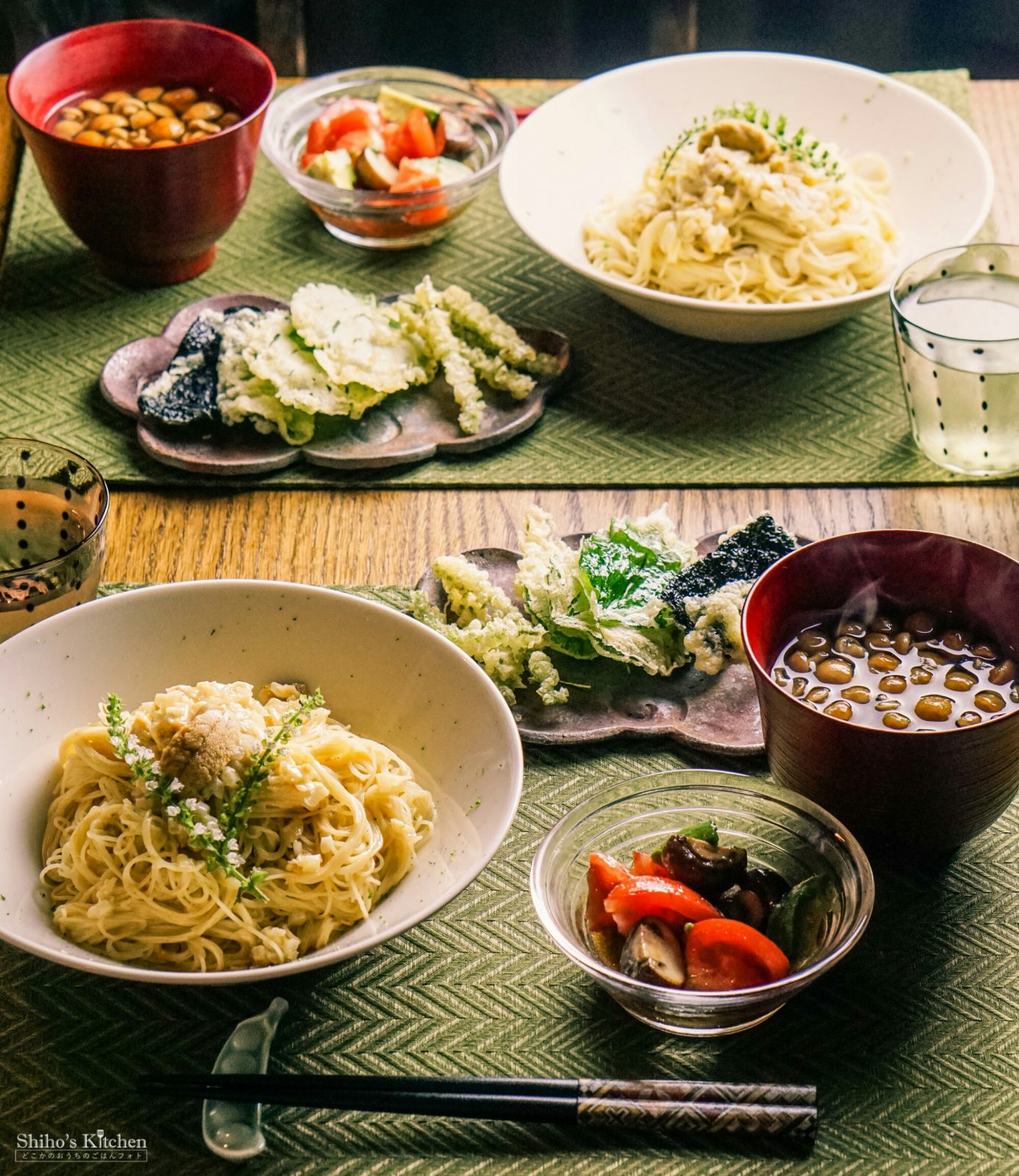もう一品は、おばあちゃんにもらったシソの実を天ぷらに。シソの葉と海苔も一緒に揚げました。
