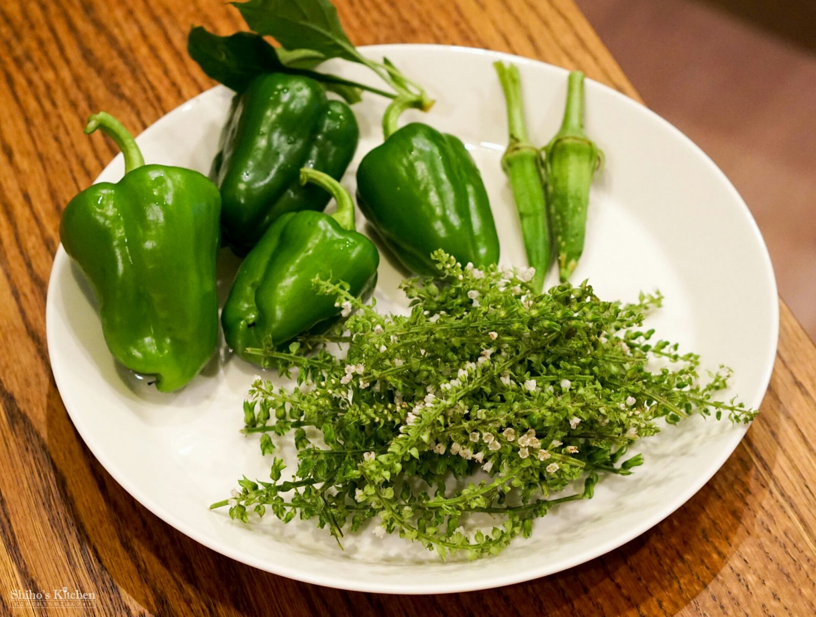 ピーマンにシソの実にオクラに、写ってないけど、茄子とモロヘイヤも。