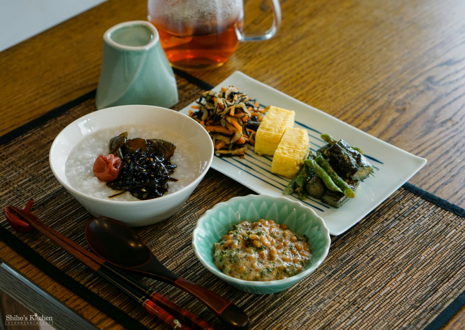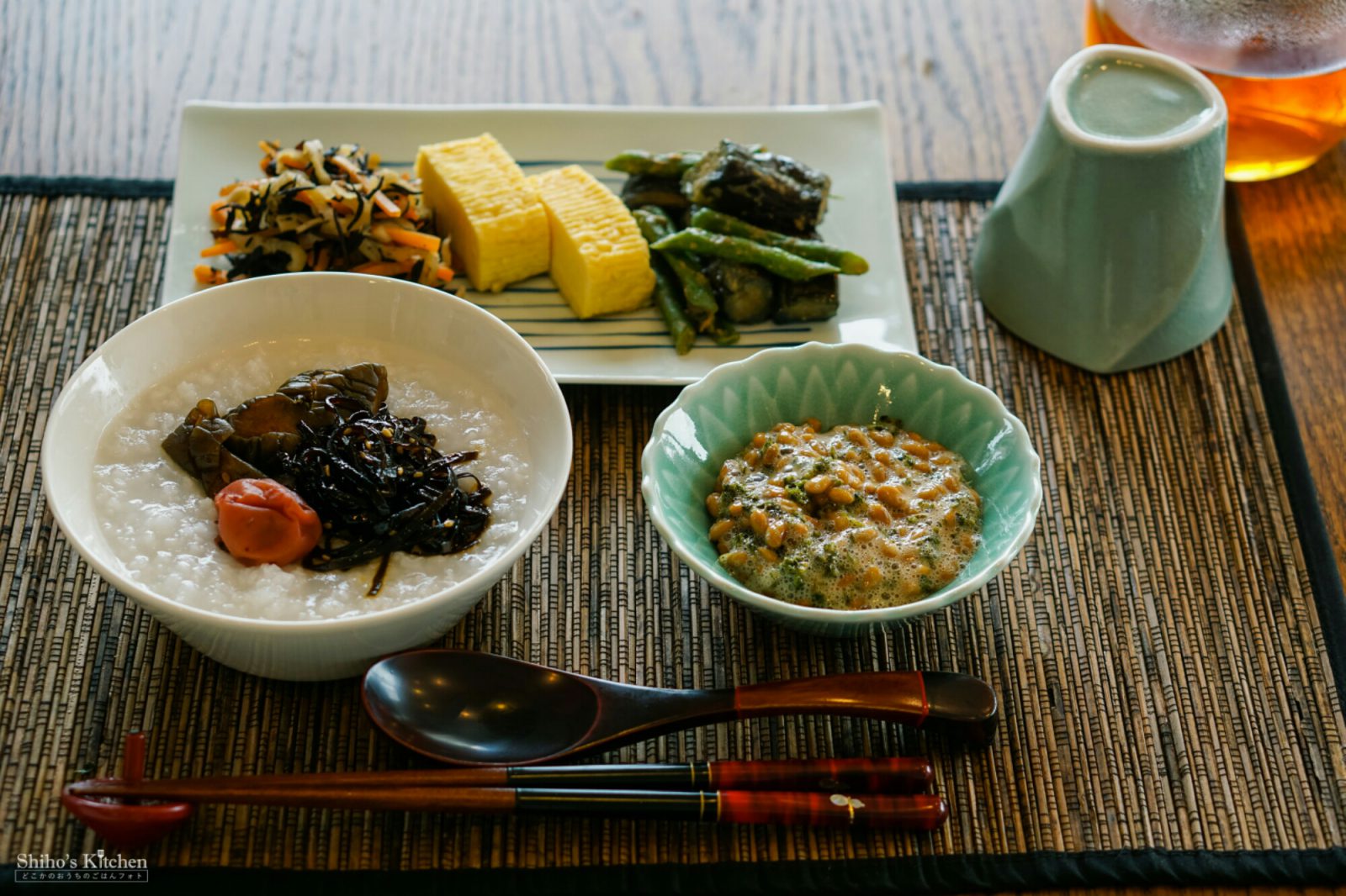 納豆にはあおさ海苔を混ぜて、