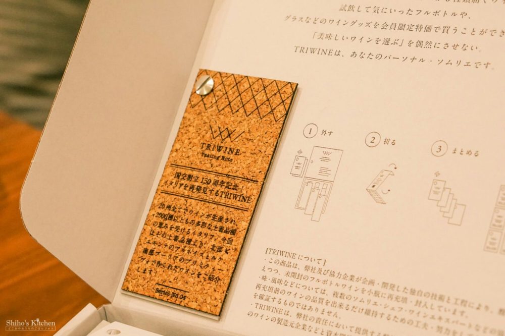 TRIWINEは、定額でグラス1杯分のワインが毎月3杯分届いて、試飲して気に入れば会員限定価格でフルボトルを購入できるサービスだそう。