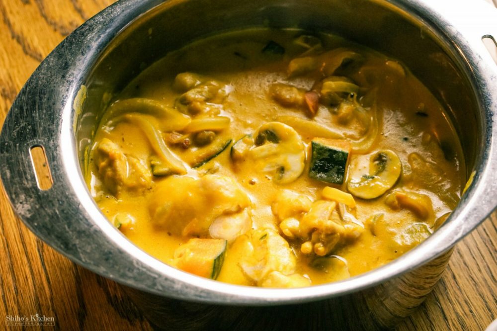 シチューは、鶏肉とウィンナーとマッシュルームを入れて、お子様でも食べられる自然な甘さに仕上げました。