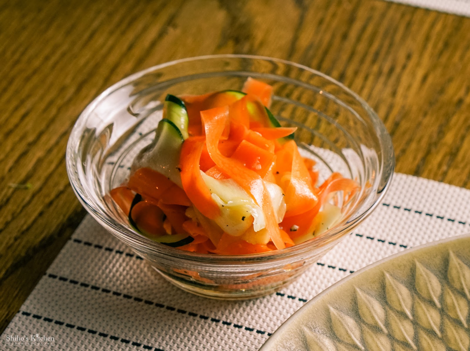 生の人参の独特のにおいが小さい頃から苦手なのですが、これは一晩置くことでなぜかそのにおいが消えて、歯ごたえだけ残る不思議。