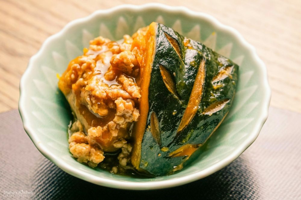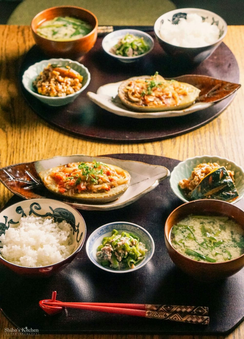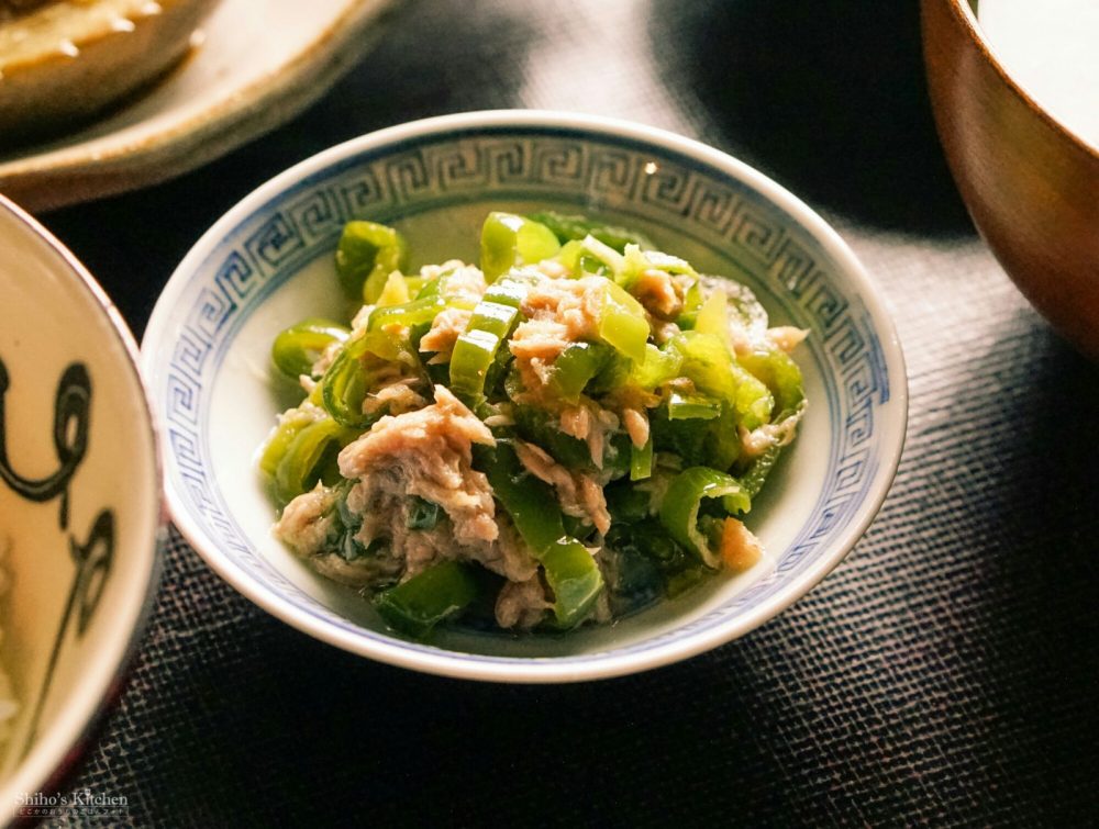 作り置きストックからかぼちゃのそぼろ煮と無限ピーマンを出して、最近インスタで話題の #坊さんの気絶 とニラの味噌汁を作り足しました。