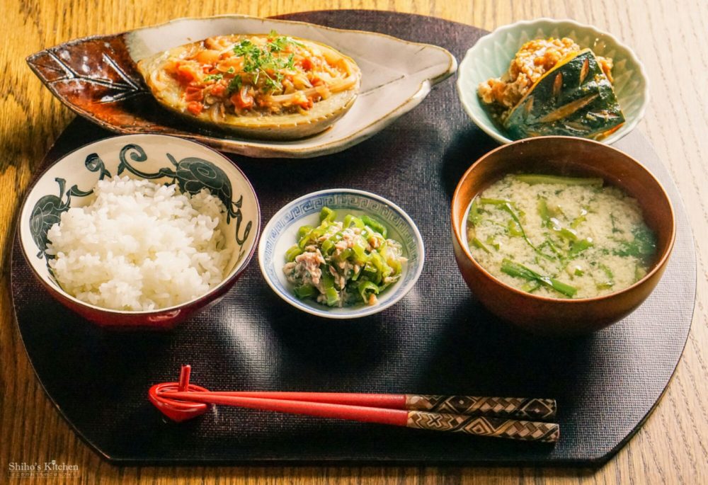 和食なので、オリーブオイル→ごま油、ニンニク→生姜に変更。炒めたトマトその他の味付けは、トルコのレシピに習って砂糖と塩のみ。