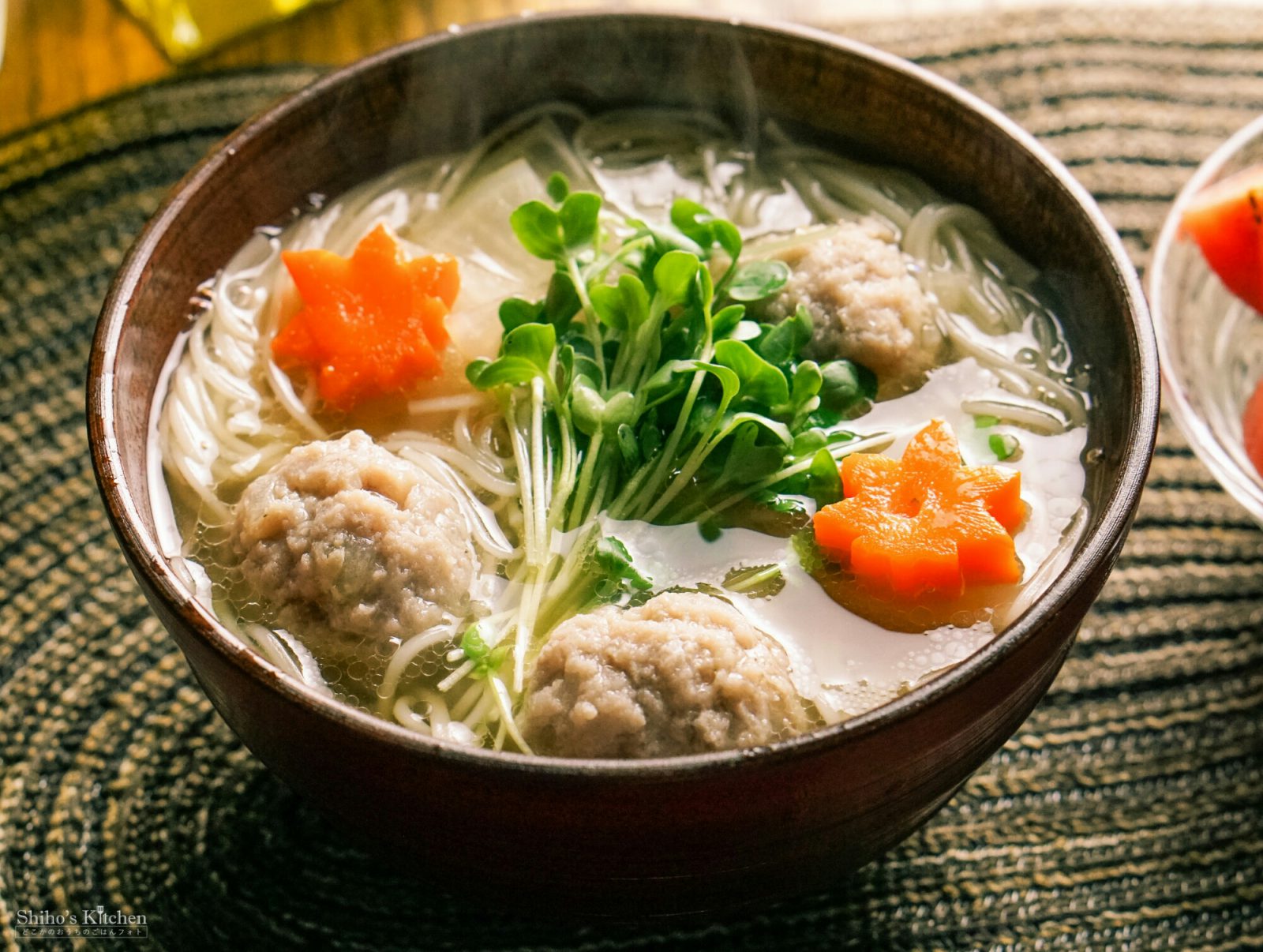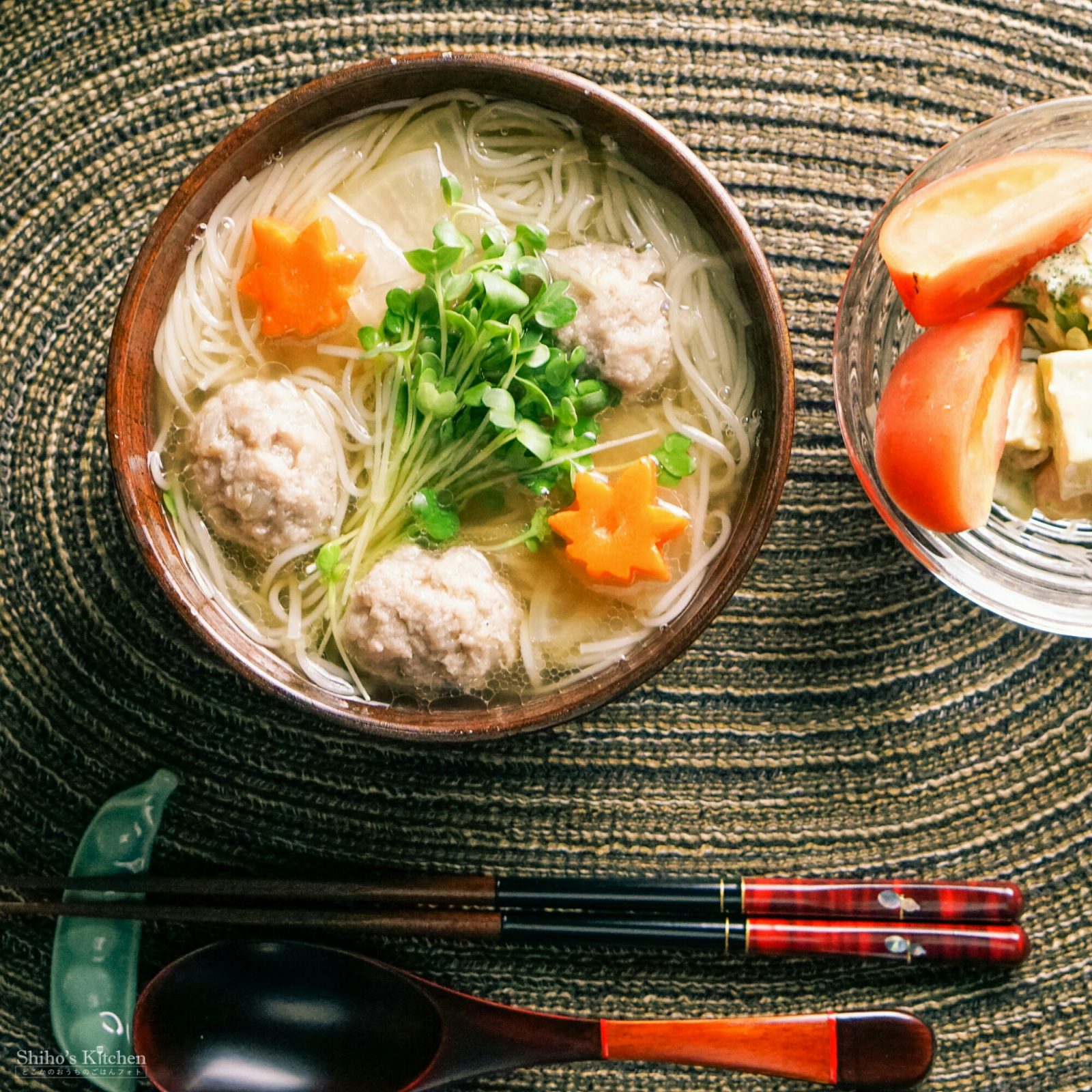 晩ごはんに適当に作った肉団子と大根のにゅうめんが病人に優しい味だったので、ざっくりレシピメモ。