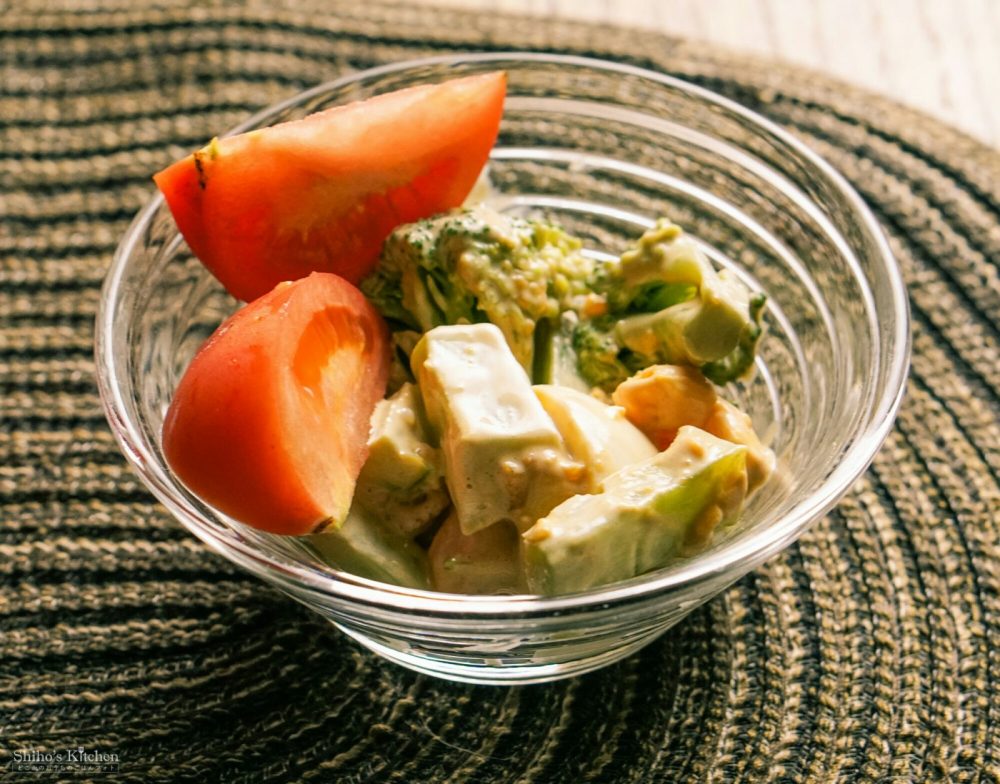 茹でブロッコリーと茹で卵は、オイスターソースとマヨネーズで和えて簡単なサラダに。