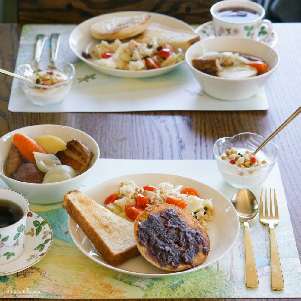 レッドクイーン、はるか、そして広島の赤丸、じゃがいもが三種類もあったので、人参、玉ねぎ、ベーコン、ソーセージと一緒にストウブにポイポイ放り込んで、昨日のうちにポトフにしておいたのです。