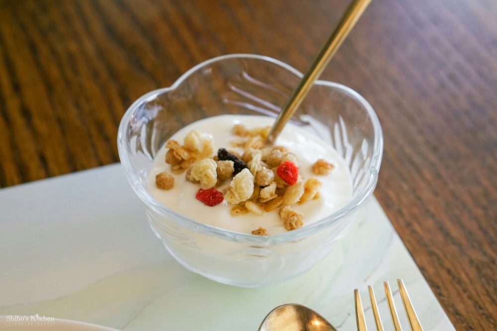 ヨーグルトは酸っぱいのが苦手で、生乳なんとかって書いてある三角柱の形のが好き。オリゴのおかげをかけて食べるよ。