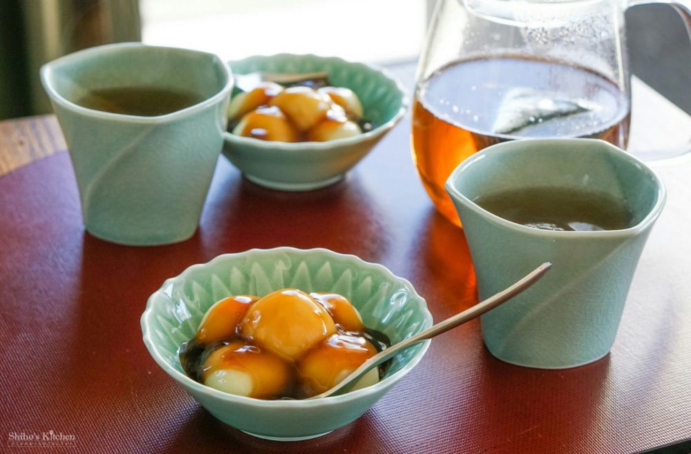 お団子は、白玉粉と絹豆腐を同量ずつと水を少々こねて、丸めて茹でただけ。水を貼ったボウルに入れて粗熱がとれたら水を切って、串にさすか、そのままお皿に。茹でたての柔らかさ、手作りならではでたまりません٩( ‘ω’ )و