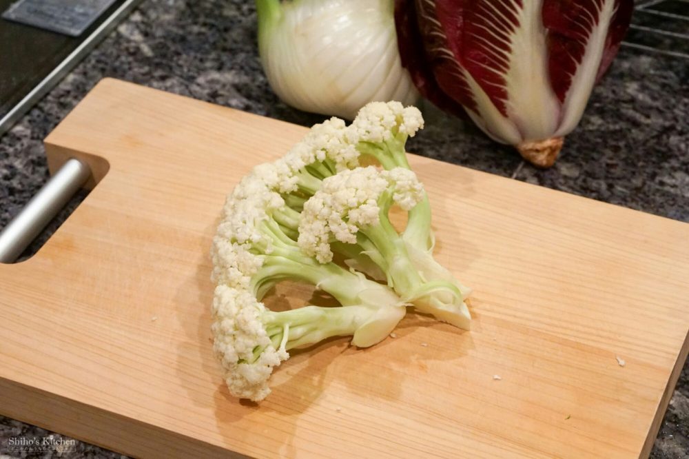カリフラワーよりももっとコリコリした食感で、上の花?みたいな部分が細かーく咲いて?ます。