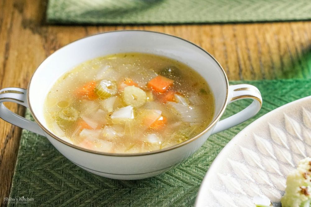 フィノッキオ部分(?)は、かじってみたら相当にクセが強くて、私は生では食べられず。煮るとクセが抜けるとのことだったので、人参とよく煮てクリアなスープにしました。