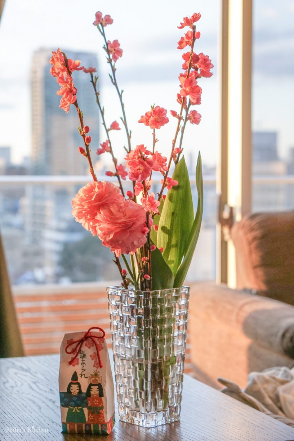 私もう三十路だし子どもは男の子だし今年はひな祭りスルーのつもりでしたが、昨日遊びに来た母が桃の花と雛あられと手作りのちらし寿司の具を持ってきてくれたので、セルフ祝いすることにしました。