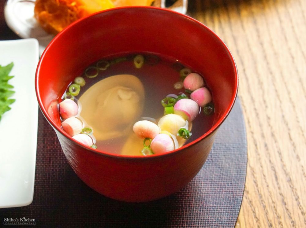 あとは、ふろふき大根、かぼちゃの煮付け、蛤の酒蒸し、蛤のお吸い物を作って、甘酒を添えたら、ひな祭りごはんの完成。