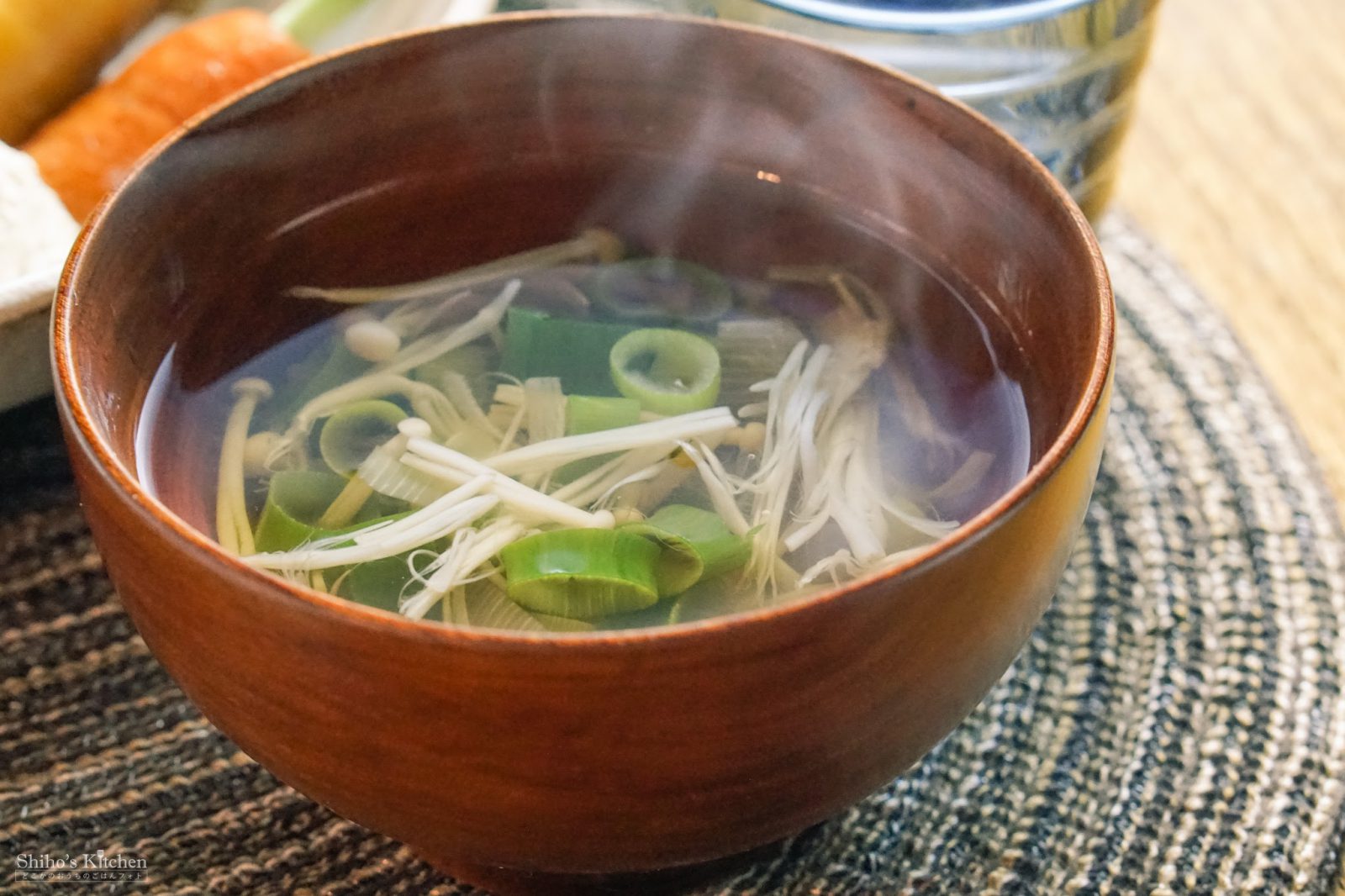 雑穀米とえのきのお吸い物を添えたら、優しい色の食卓の出来上がりー。