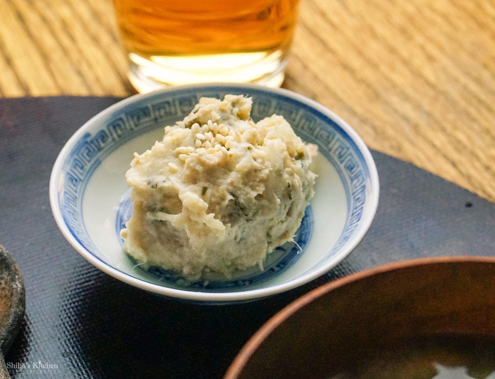 得体の知れない見た目のこちらは、青海苔とツナのポテサラ(海苔は食べる直前に混ぜないと、水分を吸って溶けてグロい見た目になります)