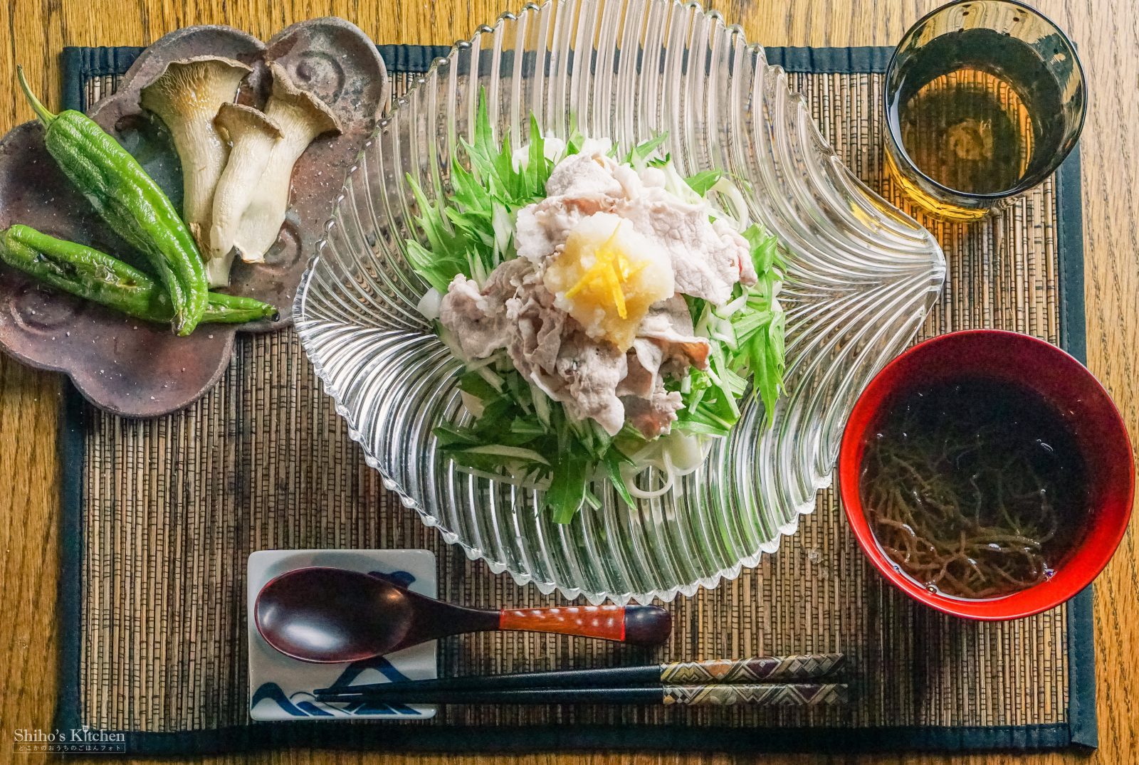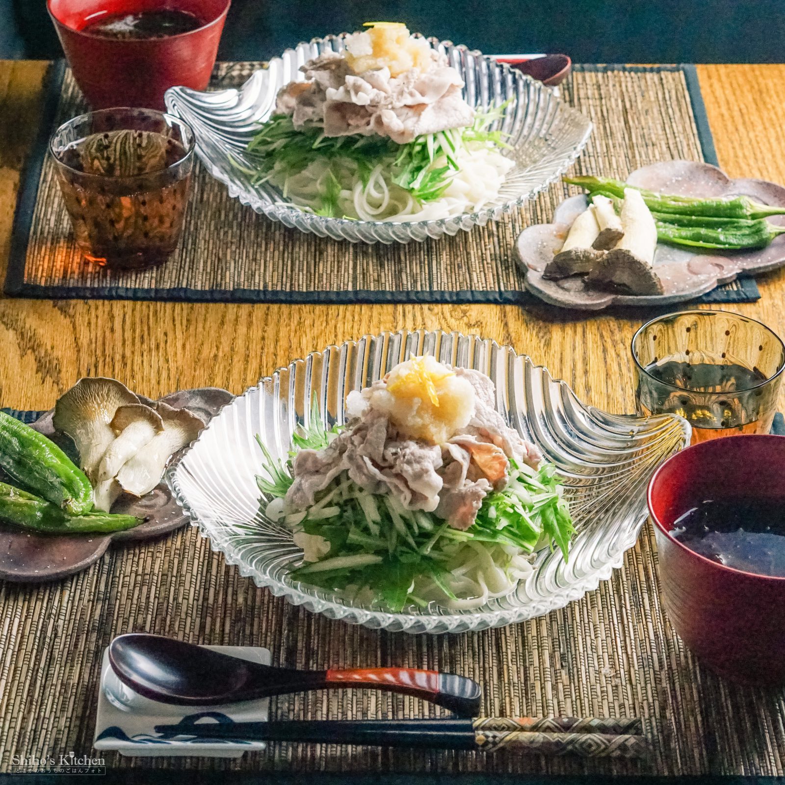 あ、今日のスープの付け合わせは豚しゃぶうどんとグリル野菜でした。おあとがよろしいようで。