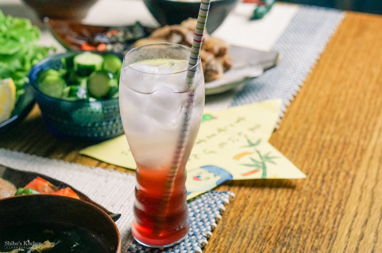 なお、七夕ですので、OSUYAのざくろ酢を水道水で割ってお洒落風にしてみました。