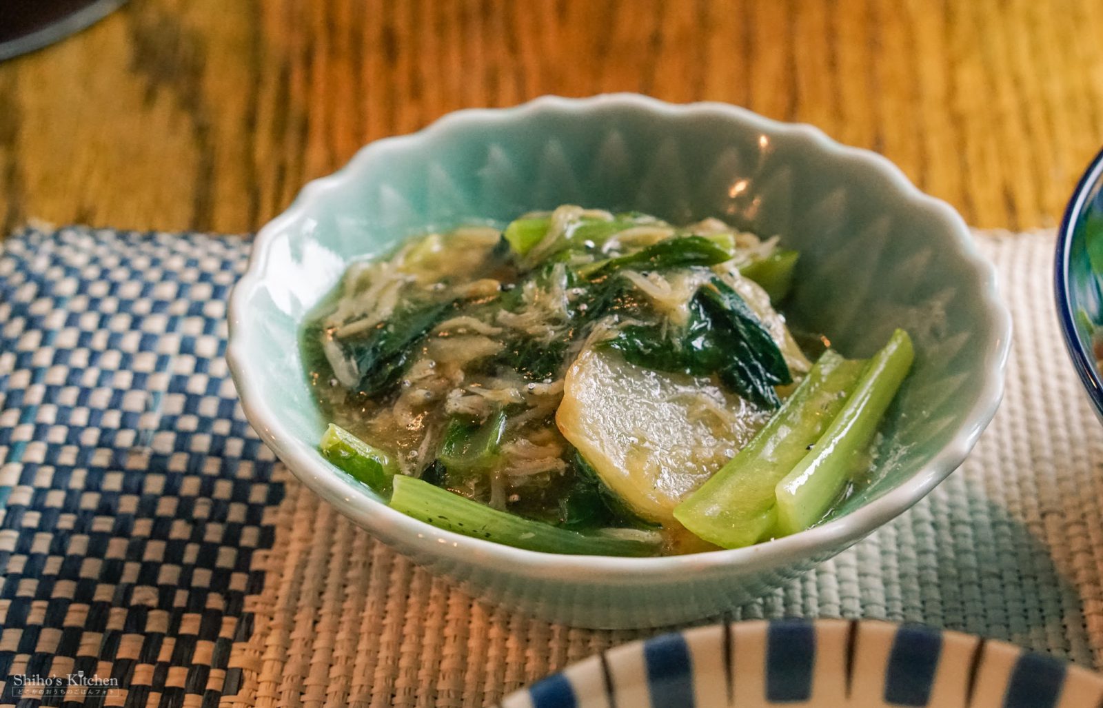 Kit Oisixの副菜、カブと小松菜のしらす煮。美味しいけど、自分で作るカブの煮物のほうが好きかなぁ。