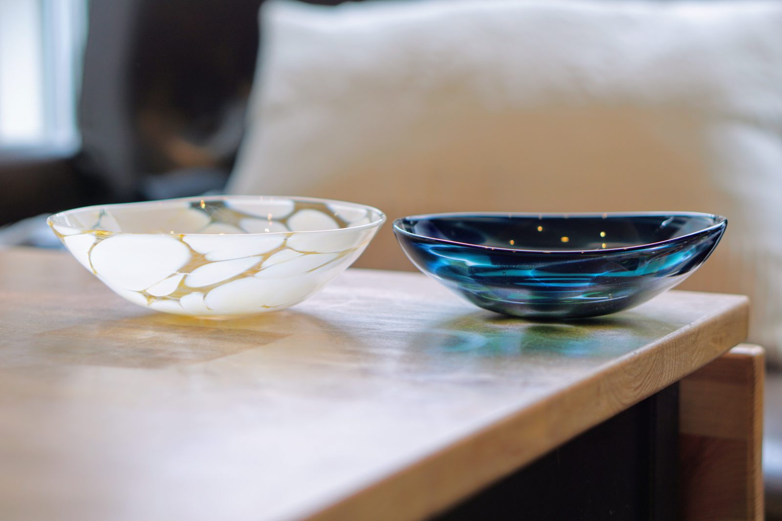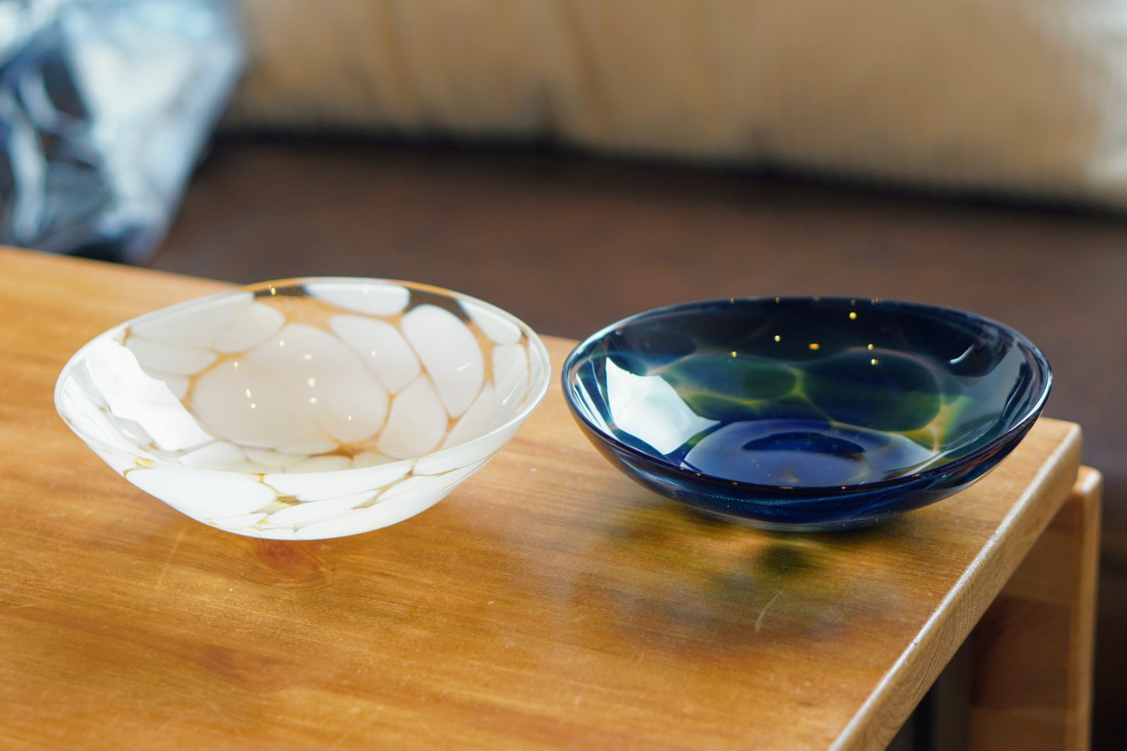 今までに買った杉江さんの小鉢やグラスは無職透明だったので、これがはじめての色つきガラスの器です。
