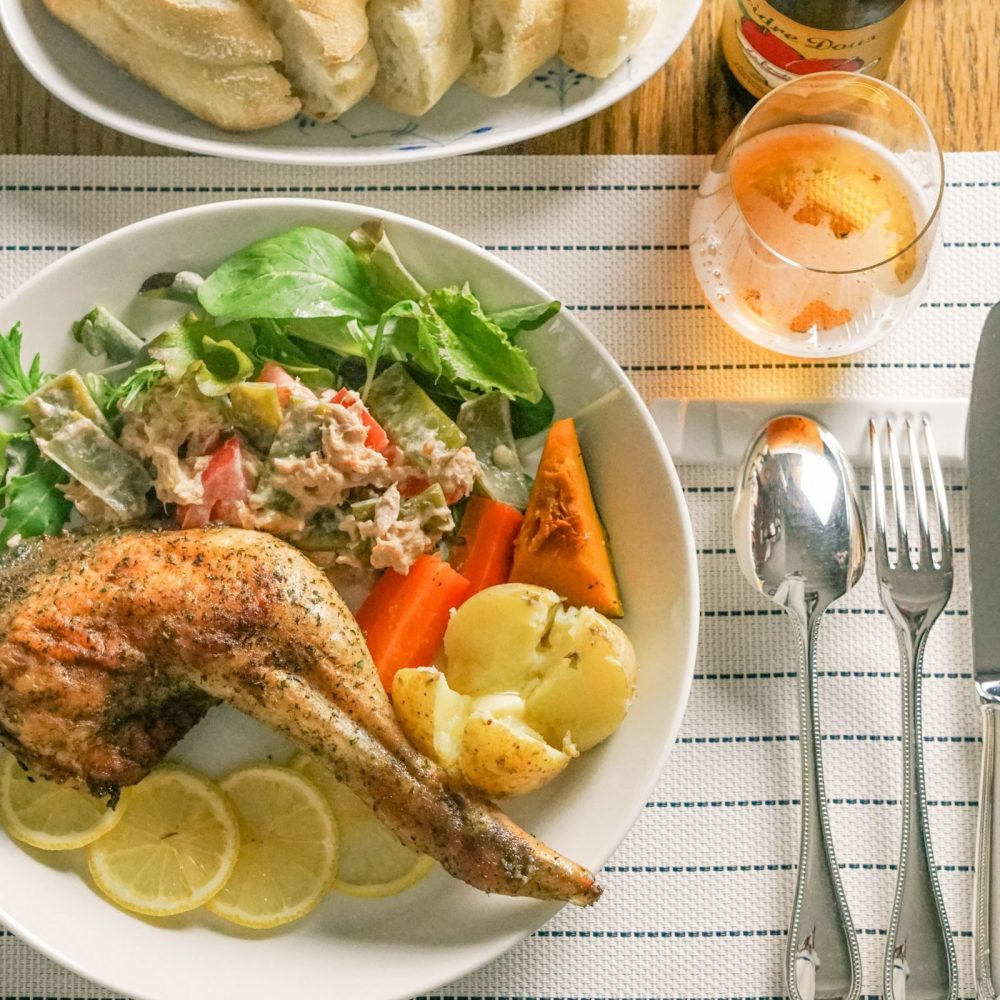 仕事に育児に慌ただしくてなかなか手の込んだ料理ができなくなってしまったけど、クリストフルのカトラリーを出して、輪切りレモンで華を添えて、気分だけでもお祝いっぽく、ね。