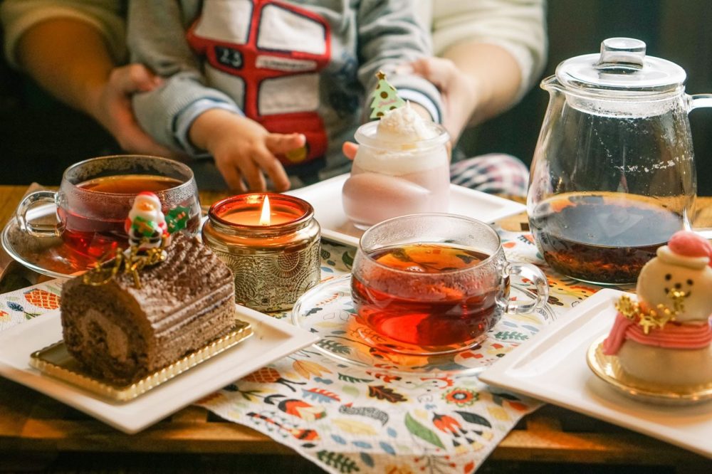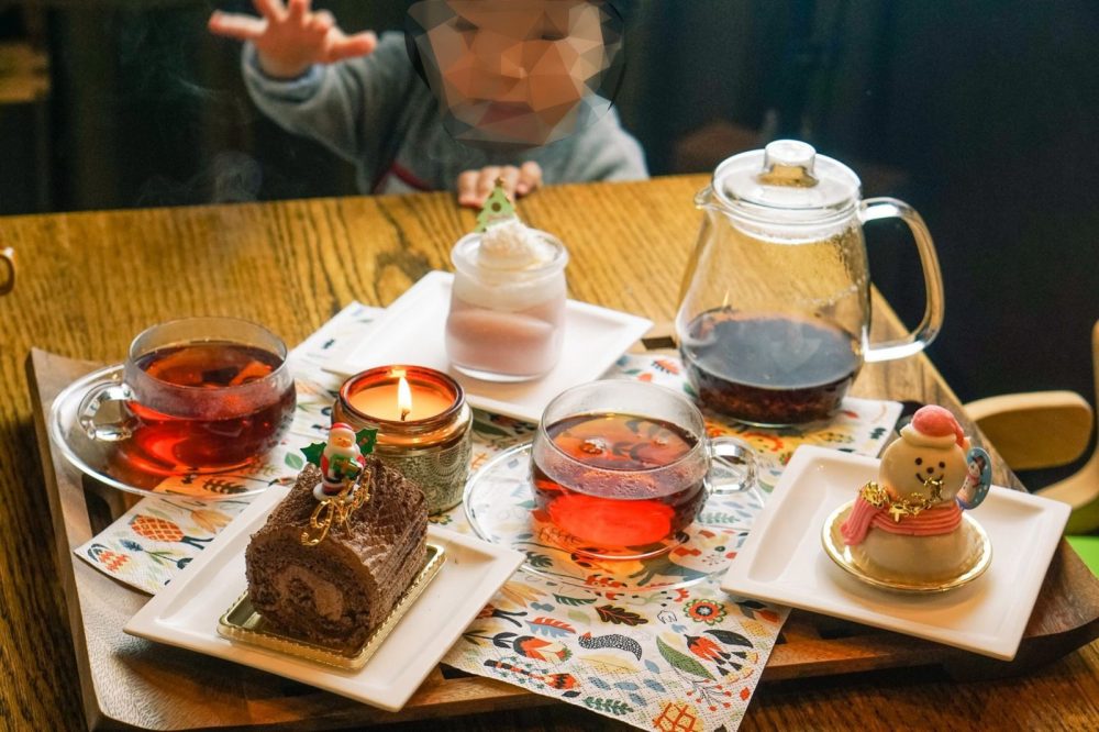 大人は白のグリューワインを出しまして、小さい人はくまモンのキラキラコップでお水をどうぞ。