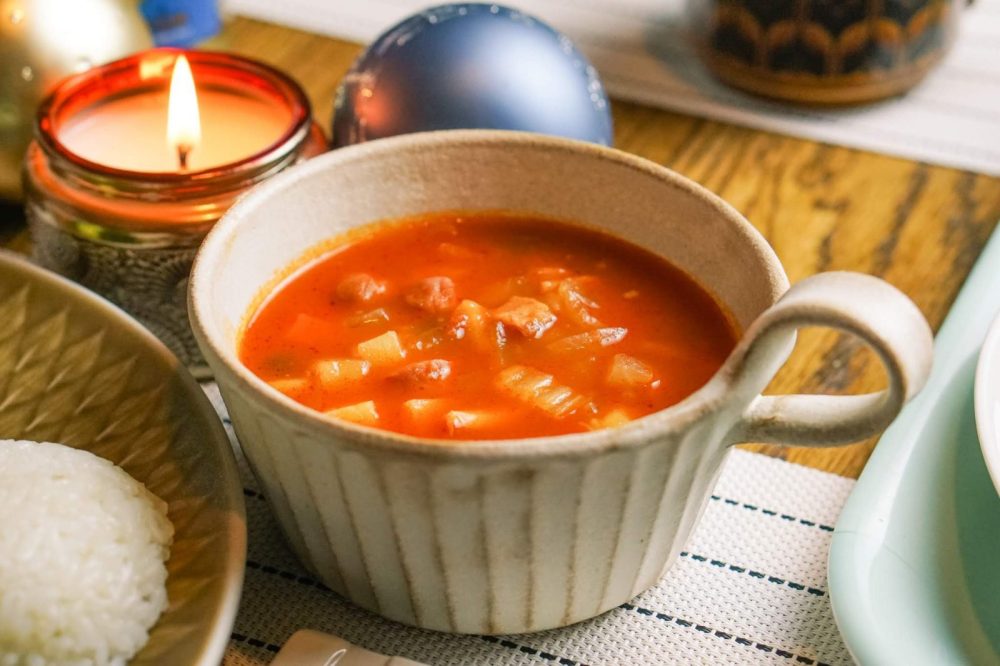 スープは、さつまいもや隠し味の蜂蜜でほんのり甘みを出したミネストローネ。