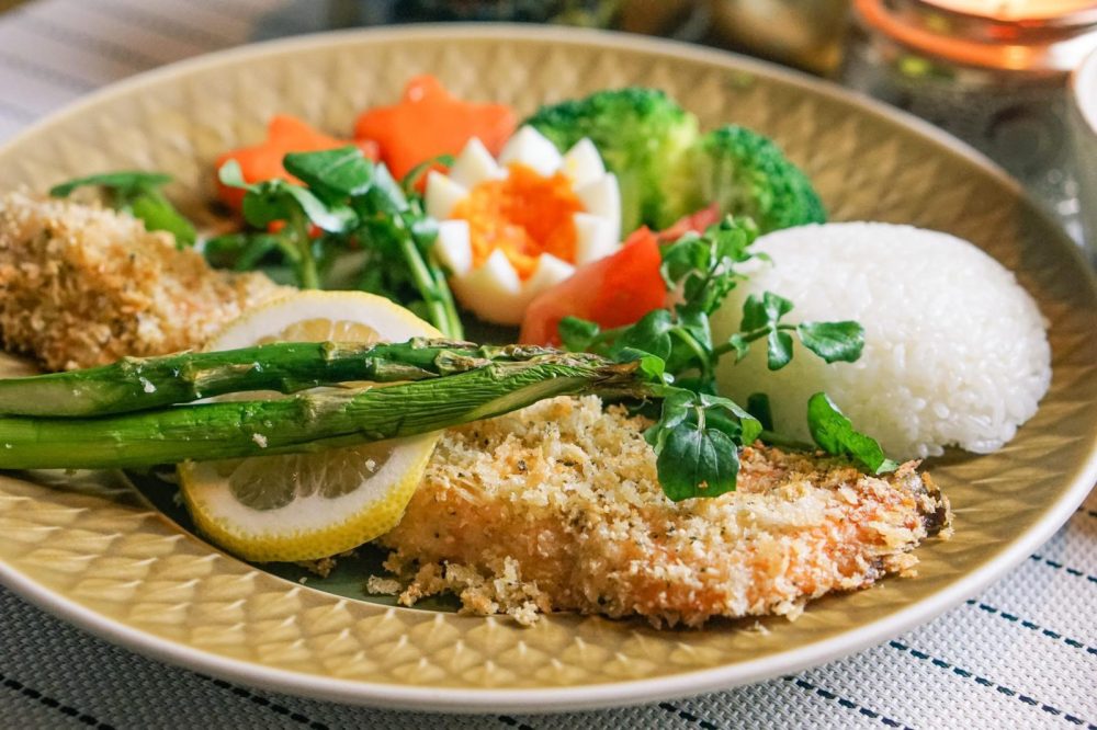 大人は、粉チーズを混ぜたパン粉をつけて、オーブンでパン粉焼きに。