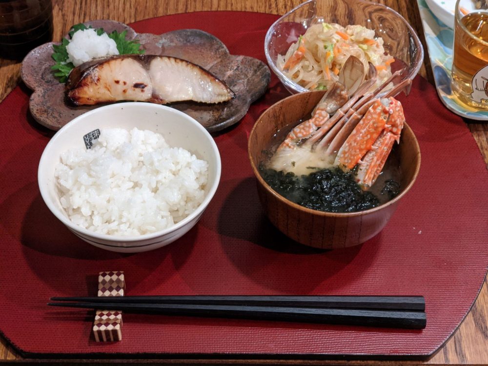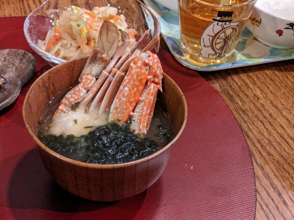 - 蟹と岩海苔の味噌汁