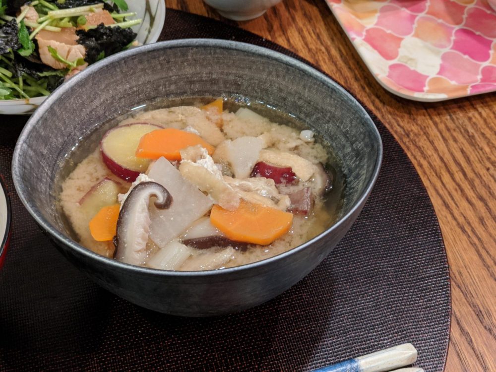 豚汁にいろいろ入れたからおかずは簡単にしよう