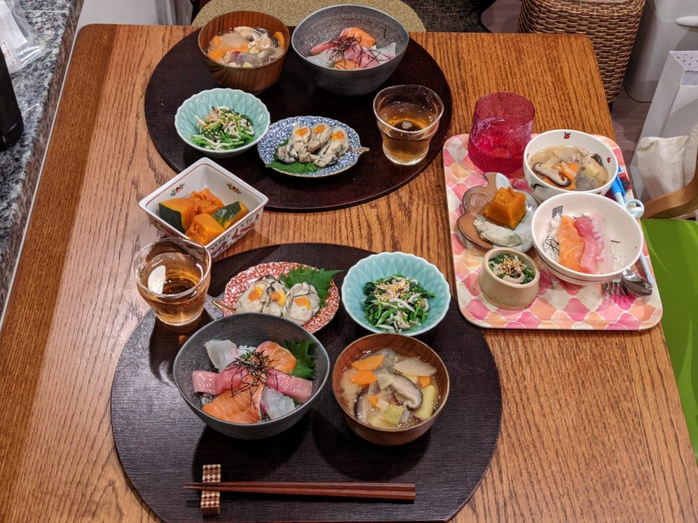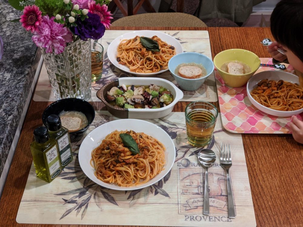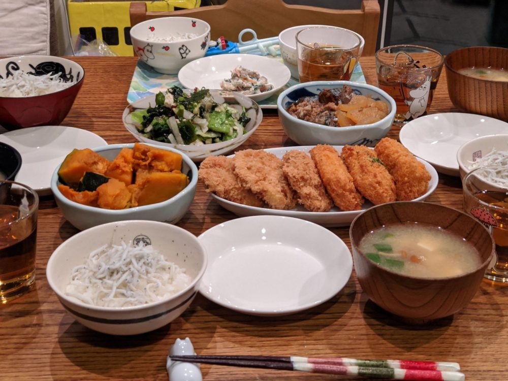 ゆっくり家族団らんというよりは、家族みんなで食卓を囲むというていを何とか成している…という感じ。日々わちゃわちゃしている。