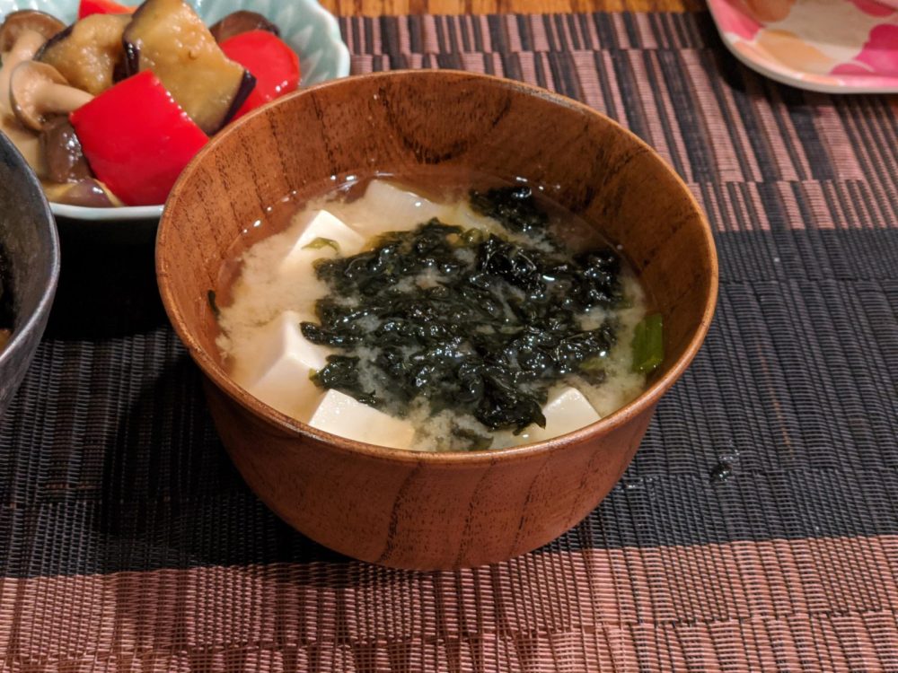 - 豆腐と長ネギと海苔の味噌汁